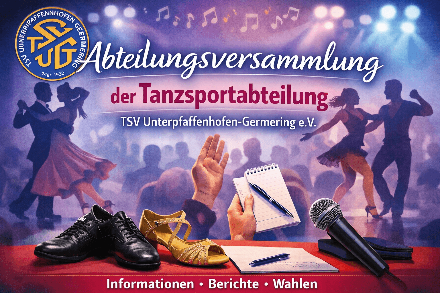 Liebe Mitglieder der Tanzsportabteilung, am 23.04.2026 halten wir ab 19:30 unsere jährliche Abteilungsversammlung ab. Diesmal treffen wir uns im Besprechungsraum des TSV im 1. Stock