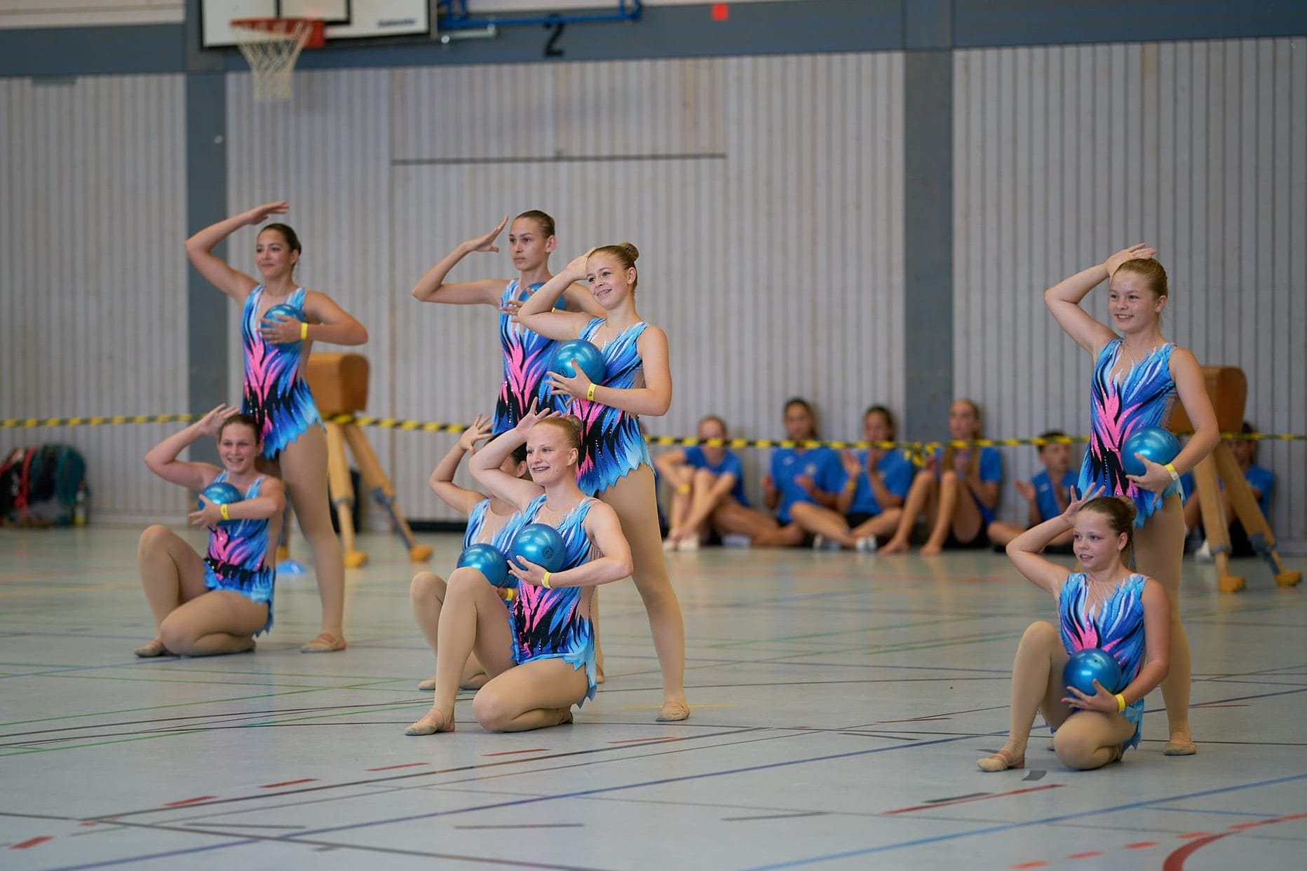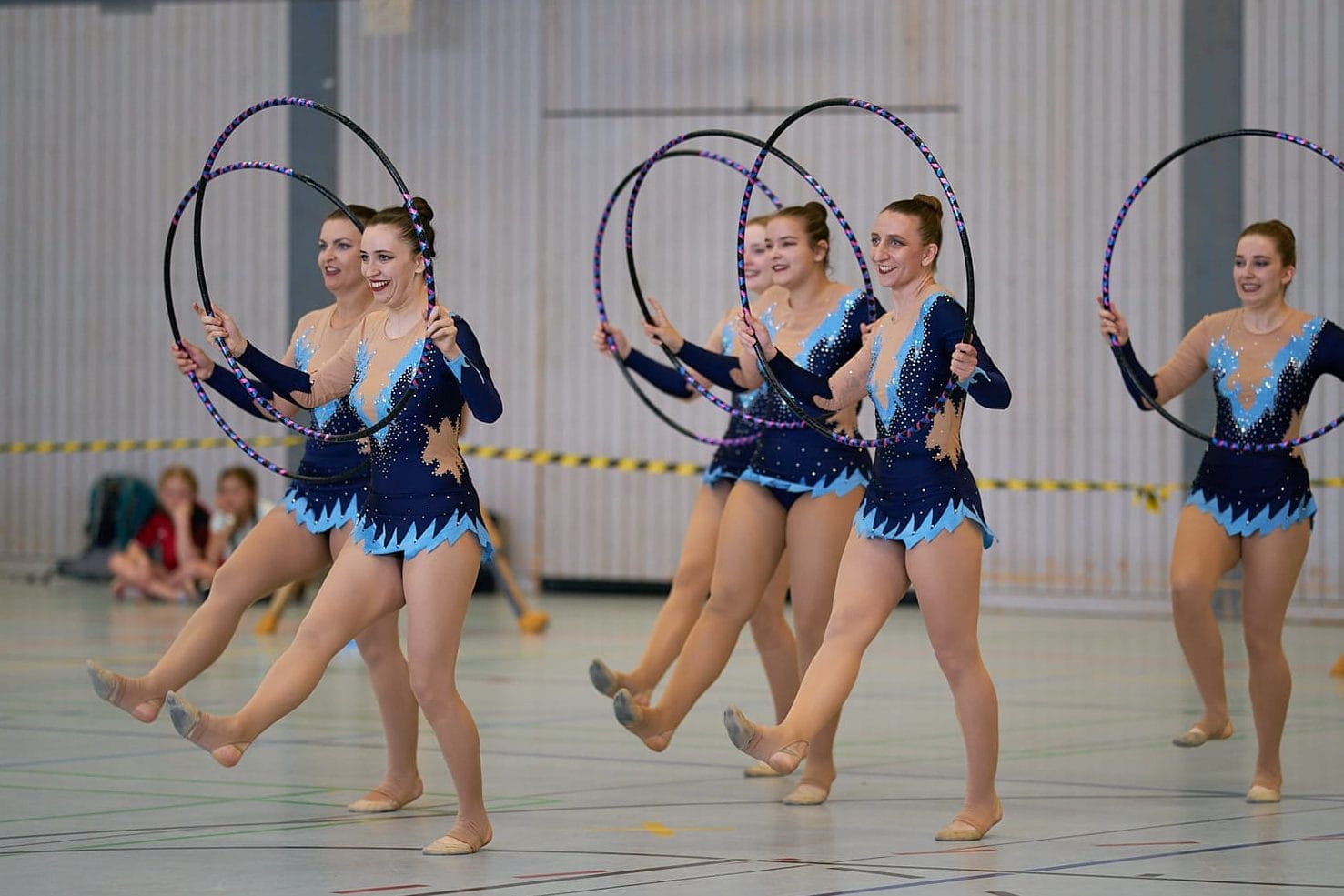 Zum Abschluss durften beide Mannschaften ihre Gymnastik mit Handgeräten präsentieren. Leider stoppte die Musik bei den Smarties nach etwa einem Drittel der Übung. Korrekterweise führten sie die Übung dennoch zu Ende und wurden dabei vom Publikum mit lautem Klatschen und viel Gejubel unterstützt. Delight zeigte einen guten Durchgang ihrer Gymnastik mit Reifen. Am Ende konnten beide Gruppen mit ihrer Bewertung sehr zufrieden sein.
